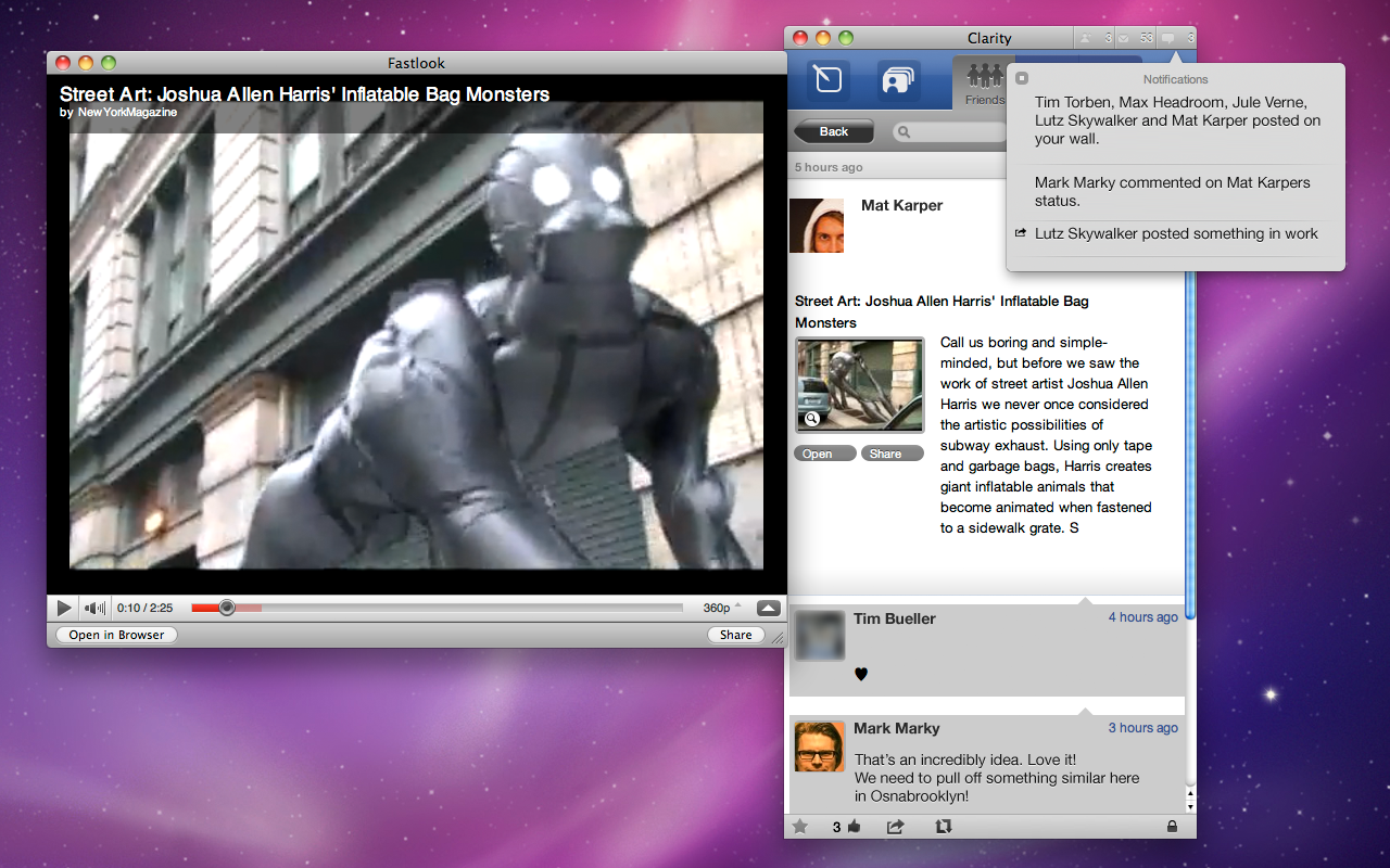 Clarity is a Facebook desktop client for your Mac that aims at simplifying your friends' news streams.