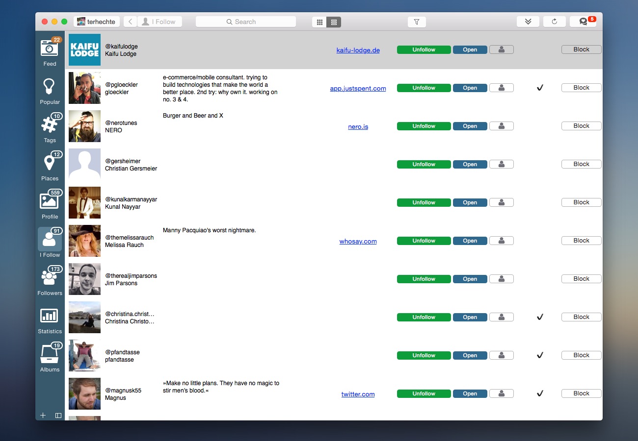 If you're following a large amount of people, it's difficult to keep track. PhotoDesk hosts a view that makes it much easier to get an overview of your followers